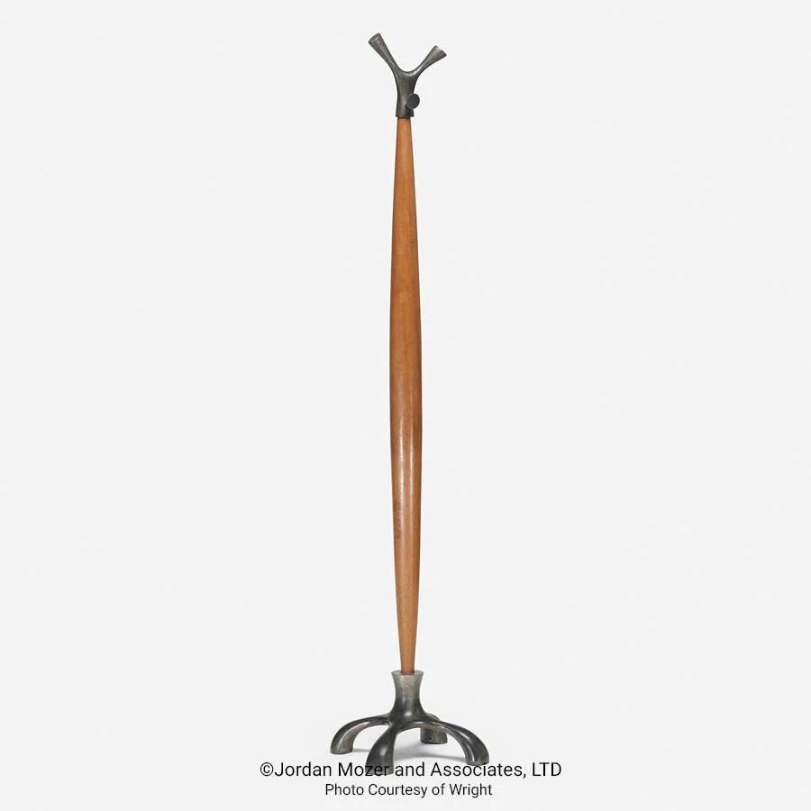 Made in Chicago, 1997/2014. The base and the top castings were cast in recycled magnesium aluminum from hand carved maple forms. The metals were hand polished and then rubbed with acid to create a dark patina. The column is solid turned American mahogany. From an edition of four pieces created in 2014, it is distinguished from the originals by a third "branch" and a natural oiled mahogany finish.
