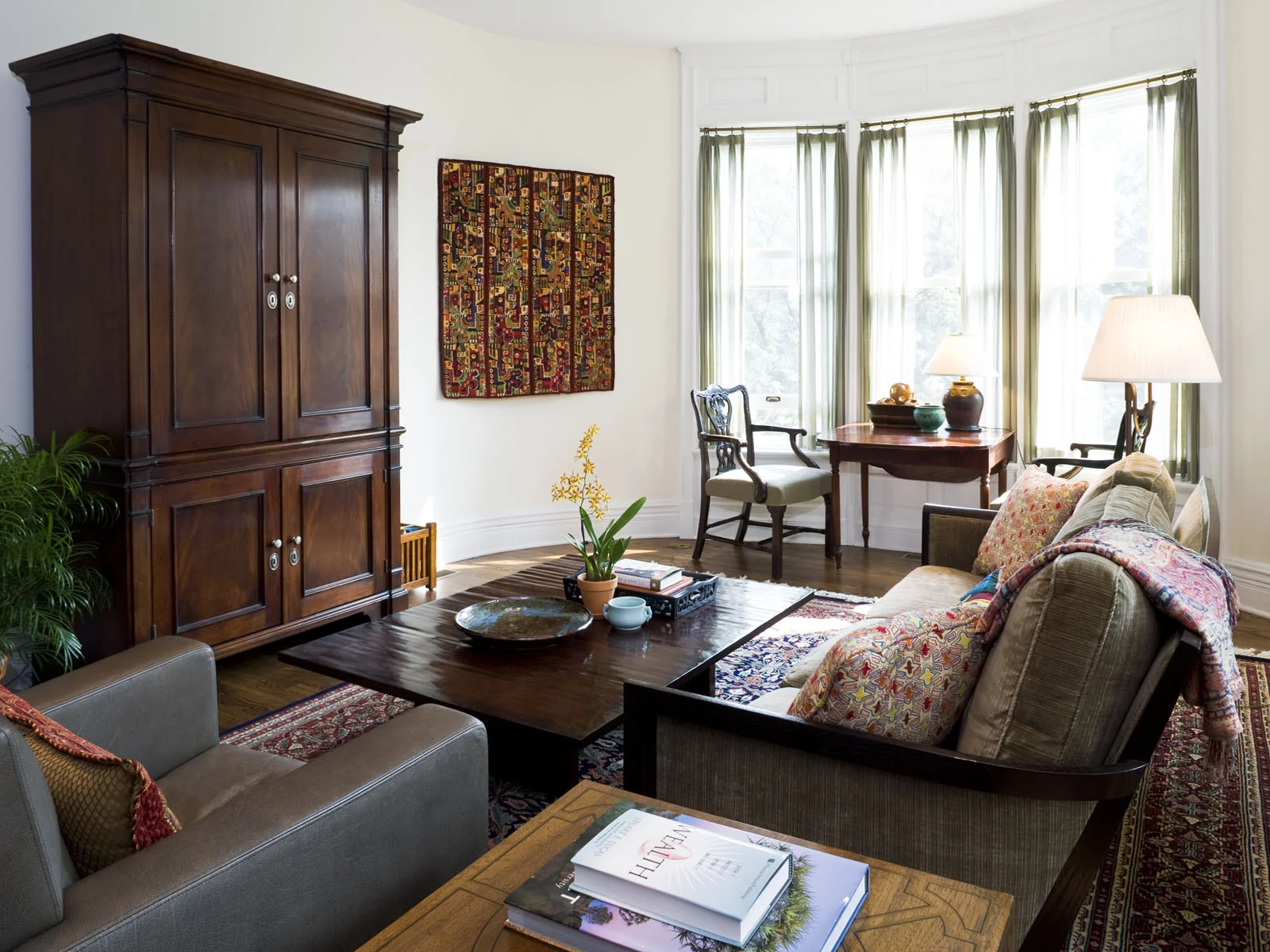 Mastro & Skylar handled the complete architectural renovation, while JMA focused on wall colors, furniture and furnishings that would create a bridge between the late 19th century architecture and the client’s collection of modern British art. JMA worked with client to develop furniture plans and to select, procure and install furniture, rugs, window treatments and related furnishings, and in the placement and installation of all art.