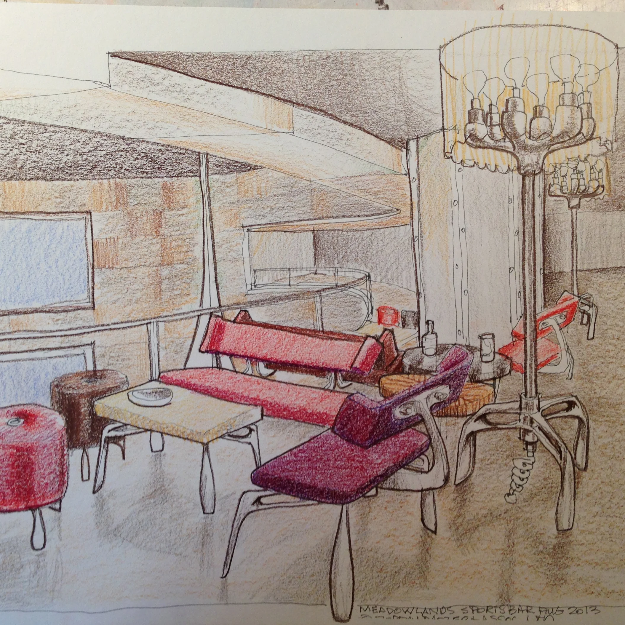 Photos courtesy of Rago Arts. Watercolors studies for the seating and lighting were prepared by the artist.